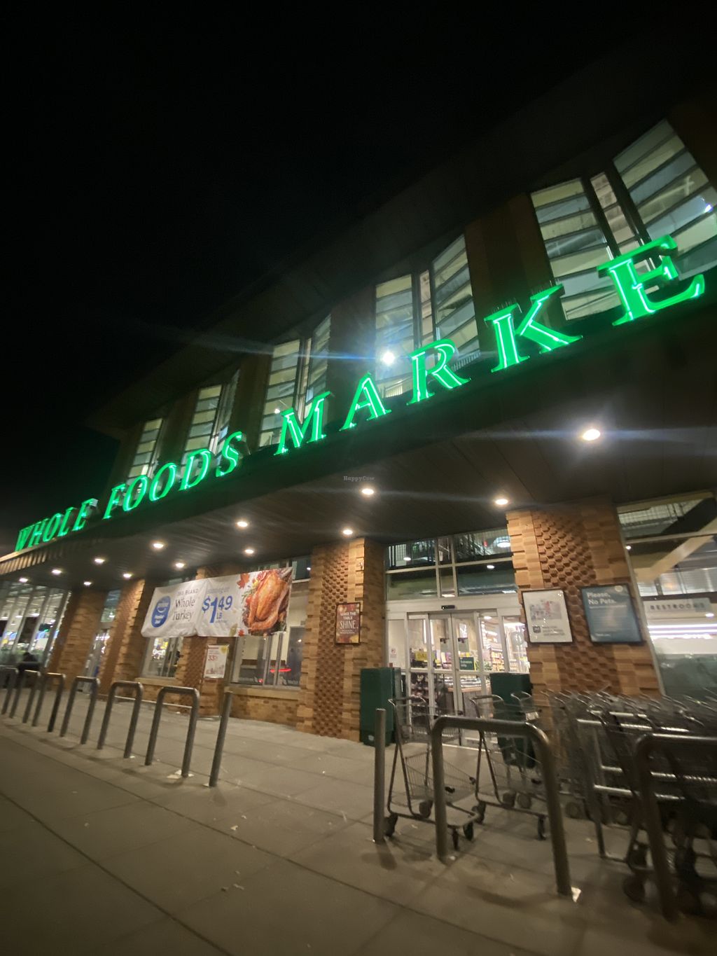 Decent place if you do not have a place to eat and are in a hurry. This place has very few vegan options from the deli, but there are vegan options on the shelf and in the frozen section. Unlike other Whole Foods if you are not use to the ABCD line plus the numbers, look at people moving along in the lines. Or ask someone. East coast and West coast Whole Foods are totally different.