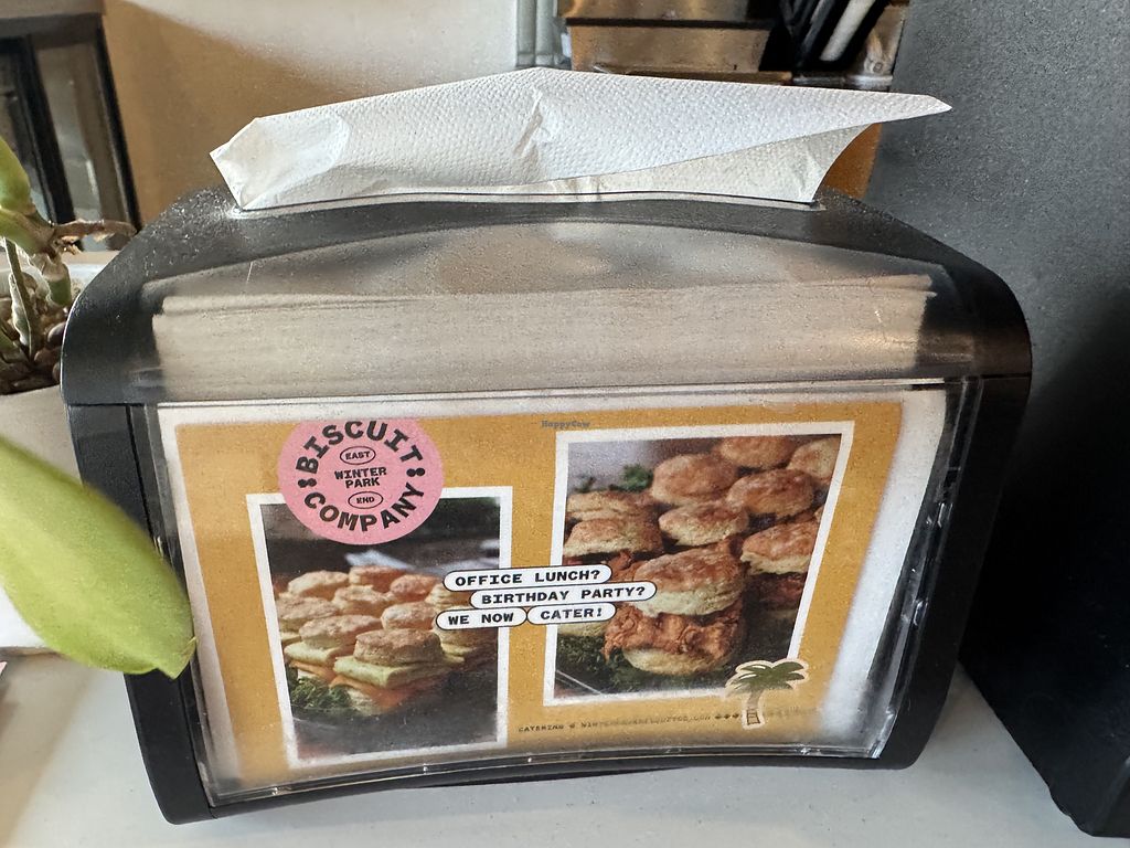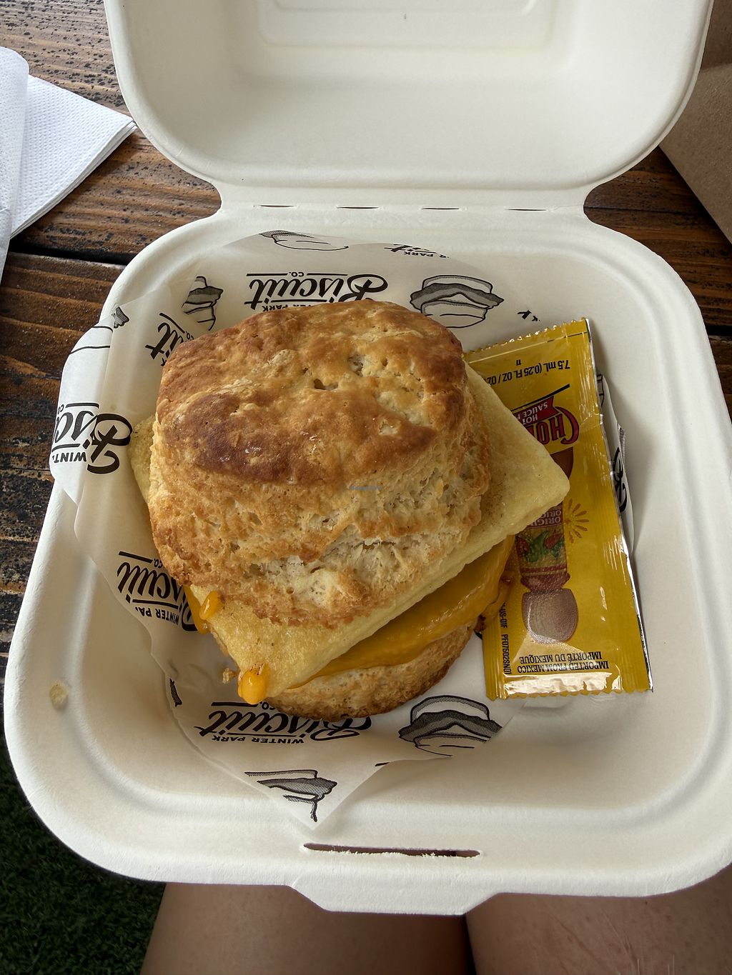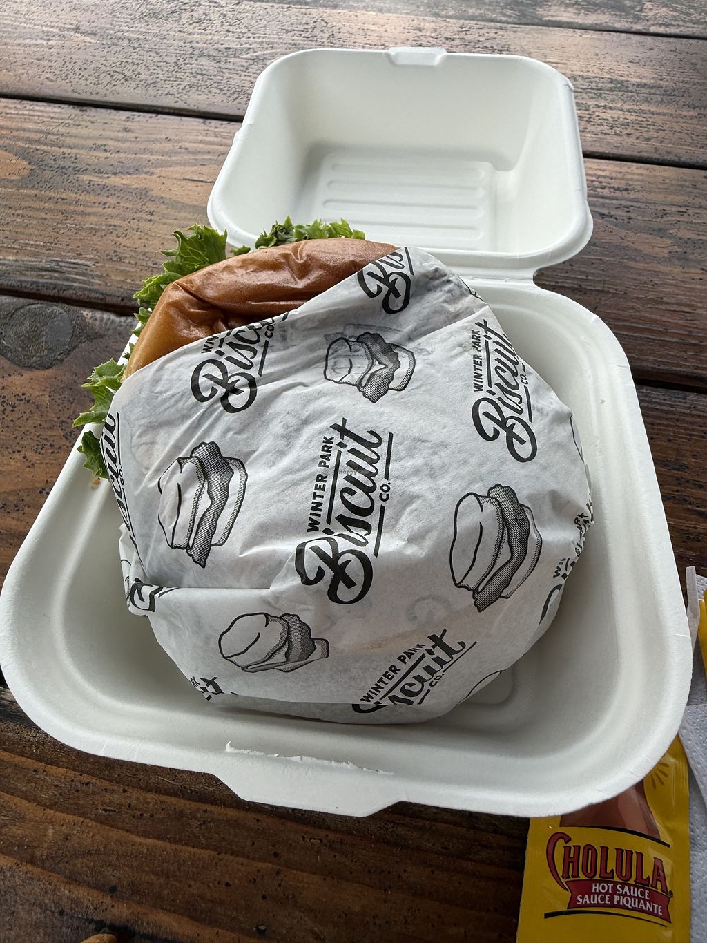 Every time I'm in the Orlando area I make it a point to come here, usually several times. Everything is so good, the death valley sandwich, the tenders, and (of course) the biscuits! They also have a bunch of sauces, including vegan honey!!