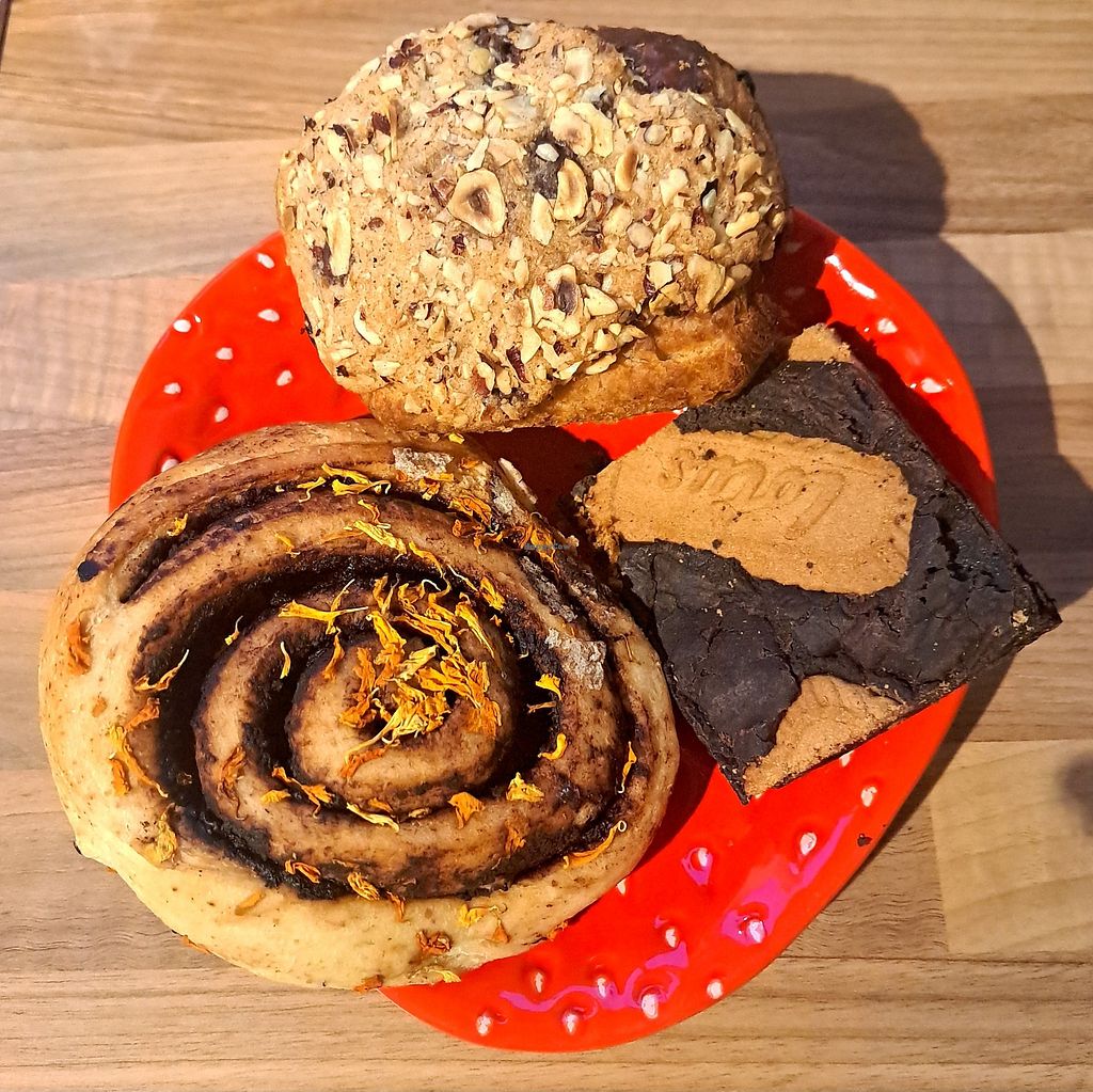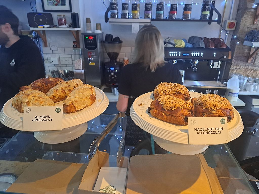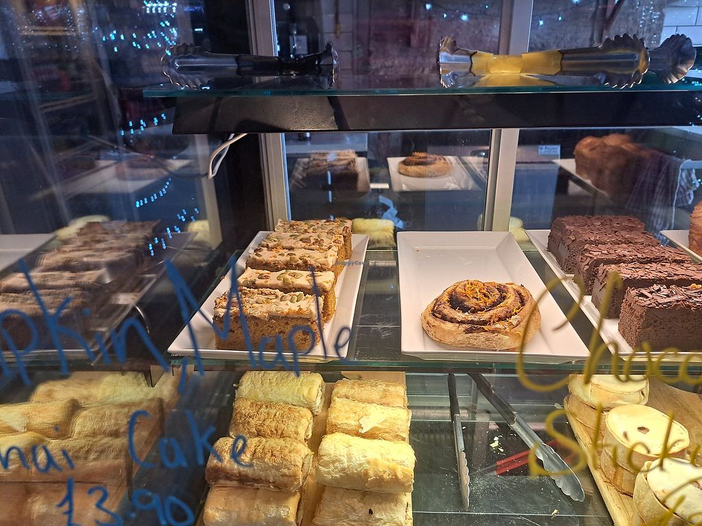3 lovely vegan cake options. I had the peanut butter blondie which was very tasty. 3 plant milk options and a main. Staff super helpful.