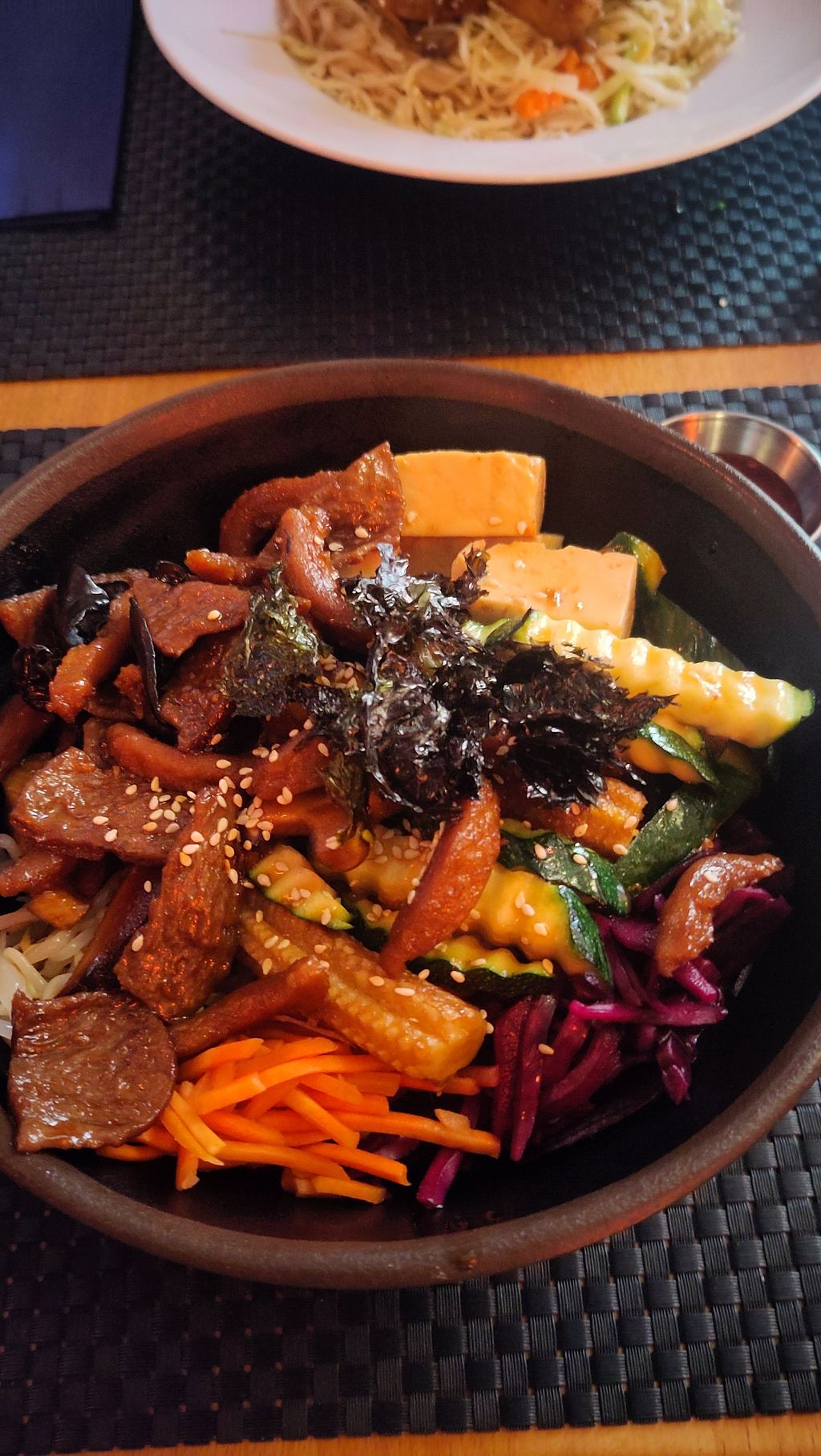 We had a kimchi bowl and bibimbap bowl. It's not your usual Western asian food, but more authentic flavors. It was tasty, well seasoned and spicy. There a seven clearly labeled vegan dishes and three more vegan noodle dishes.