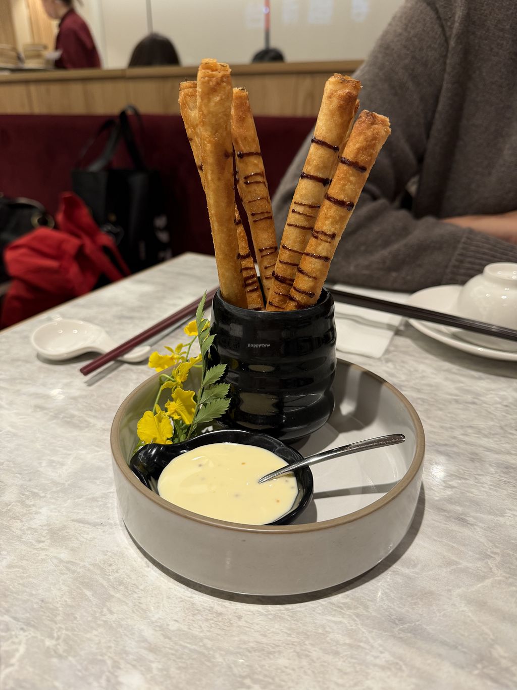 Read moreWe had the chopped mustard greens and tofu wrapped in bean curd sheet. They were a bit dry, and we would have liked some dipping sauce, but they had a good flavour and texture.