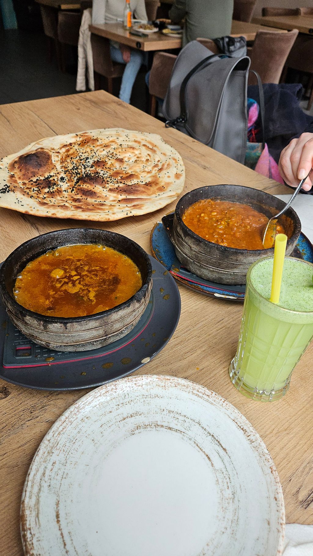 Huge restaurant with very accommodating and friendly staff that knows about veganism. We had the vegan starters (consisting of 2 types of hummus, baba ganoush and fresh veggies) as well as 3 mains, and we were taken to food heaven and afterwards to food coma. Both foul and veggies stew, which are vegan by default, were on such a different flavour palette we never tasted, it was really mind-blowing, yet so addicting and delicious. Huge portions as well, but frankly we couldn't stop eating as it was too good. After ordering we had to wait some time, but our stews were served sizzling hot in clay dishes, also the bread was fresh out of the oven as well. Loved the thick mango smoothie as well. The place is huge and not the calmest, but I saw an elderly German couple hang out for hours in this place, so I consider it a very warm, cozy and welcoming place. Also our waiter asked at least 4x if everything was alright, and cashier refused to take tips. Highly recommended restaurant!