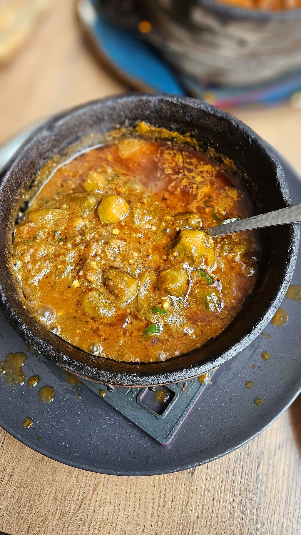 A quick walk from the station. We stopped there for lunch so didn't order starters, but they looked so good I want to come back another time to try them. We had the foul and the okra stew, which came in sizzling hot and were absolutely delicious. They were served with very generous amounts of lovely freshly baked bread that pulled apart into beautiful layers to mop every last bit of stew. The lemon juice with mint was wonderful as well. Great choice all around for lunch or dinner, and with quick and helpful service and affordable prices too!