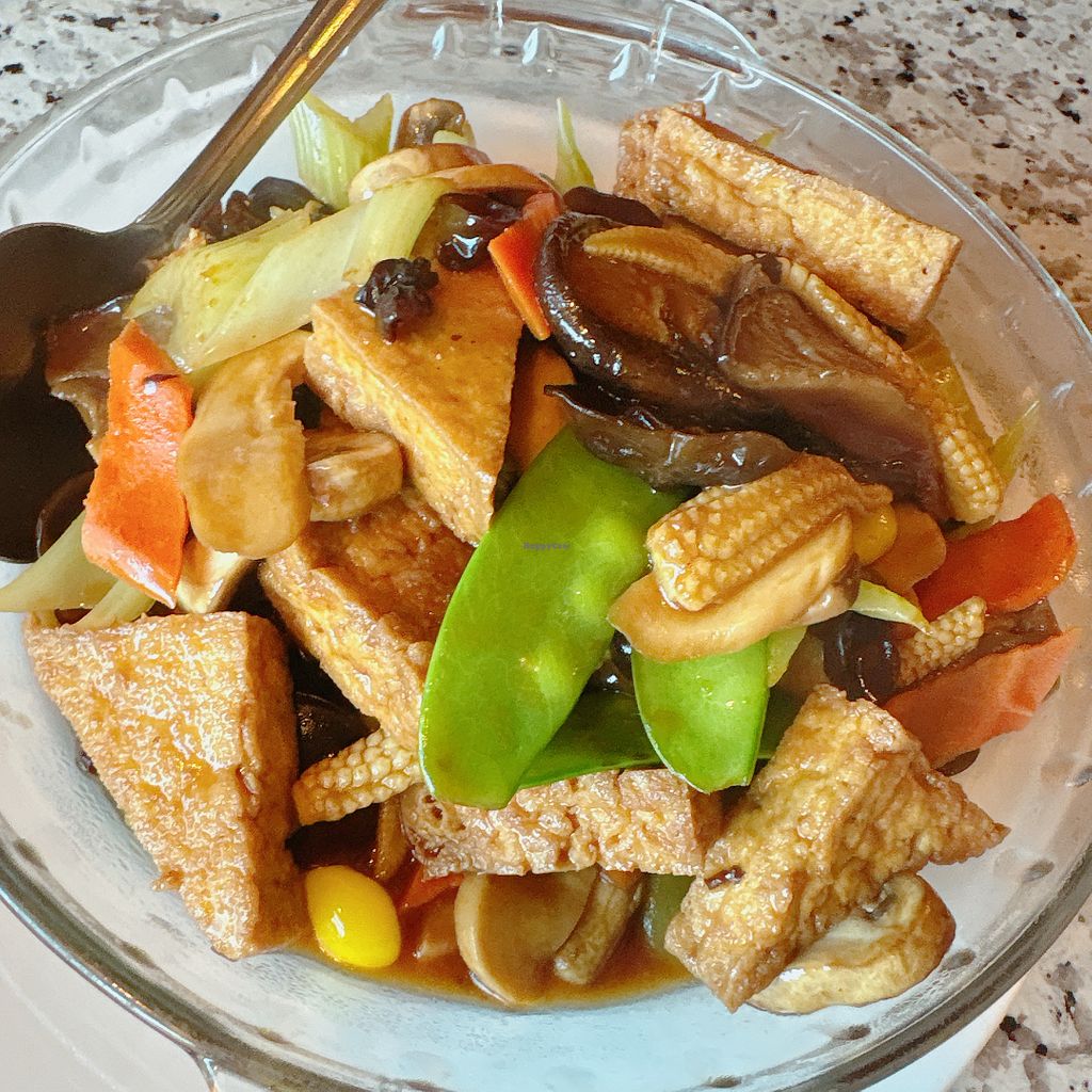 Veggie Ham, Mixed Mushrooms, & Tofu with Hot Sauce in Hot Pot I lov…