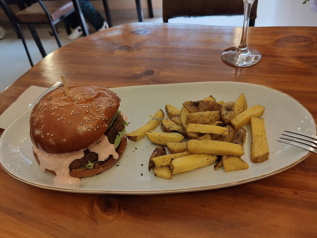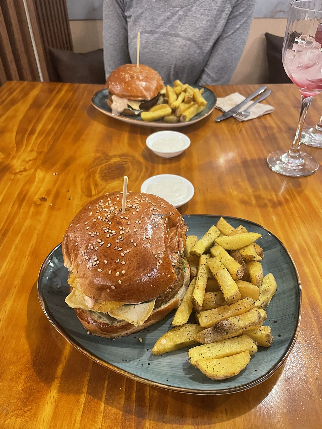 I had the Nikey burger there. The chips tasted amazing, and the burger was great too.