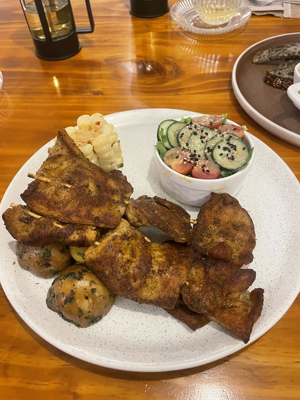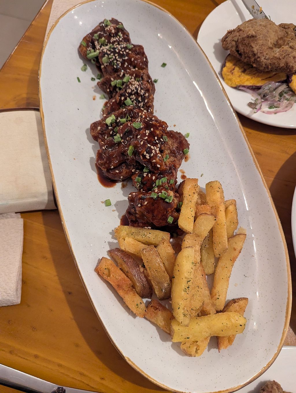 We had the BBQ wings and the chicharon and they were both very delicious. Then the apple cake for dessert. Nice seating and friendly staff. Bit more pricey than other places but the portions were a good size.