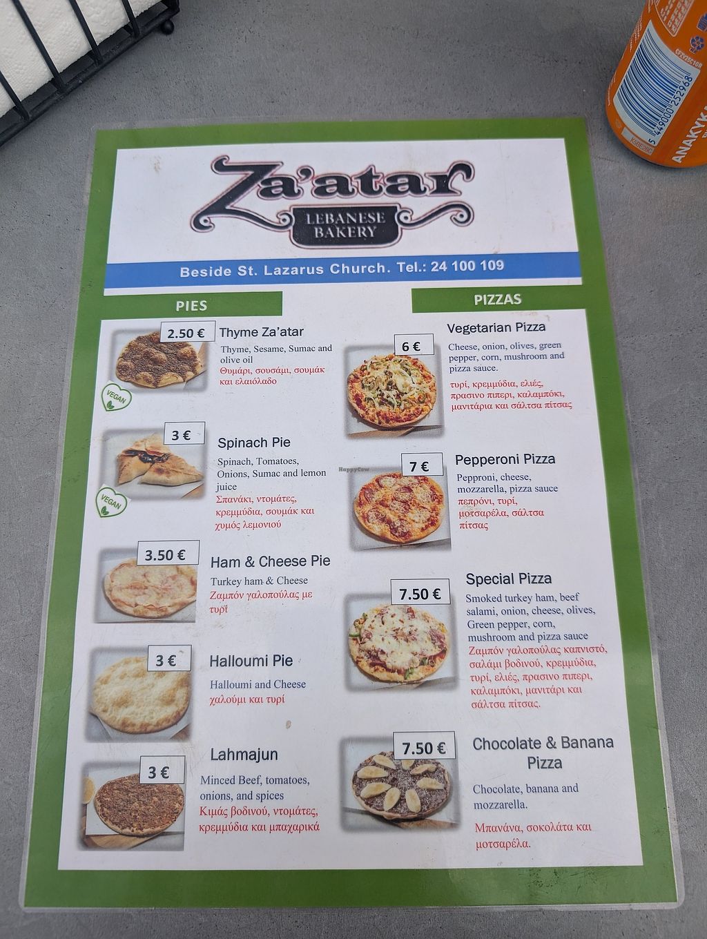 Right in the center of Larnaca you'll find this cheap little joint. It's more a takeout place instead of just a bakery, with outdoor seating available. Most (not all) items on the menu are vegetarian with the option to be made vegan, based on the sauce you choose. The falafel wrap was absolutely delicious and the service friendly. Dinner for only €3!