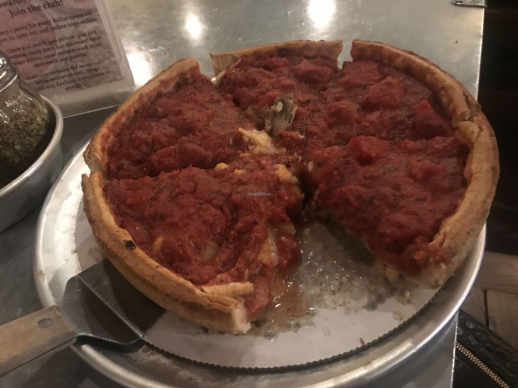 Zachary’s is a Bay Area gem and they have some vegan options. The Spinach & Mushroom deep dish pizza with vegan crust and vegan cheese will not disappoint.